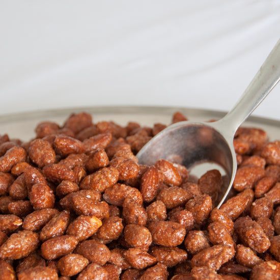 Roasted and glazed, these nuts are perfect for snacking, gifting or just to have on hand for when your neighbors stop by. Perfectly coated with cinnamon and sugar, this treat is a distinct balance of sassy and sweet. Choose your favorite nut or opt for a cone of each.