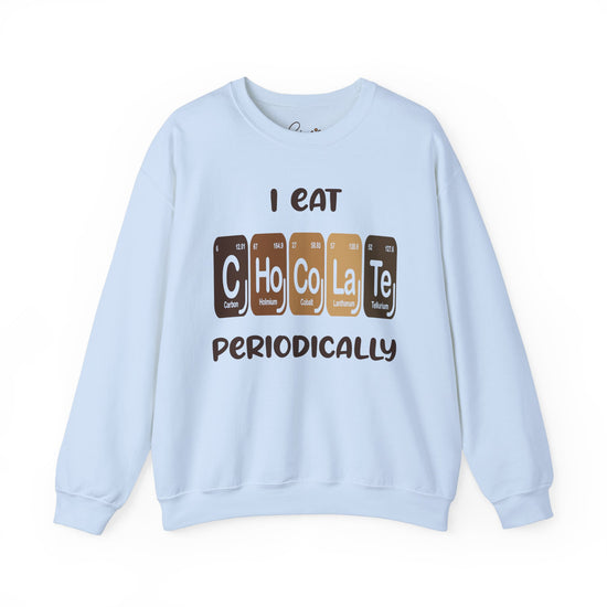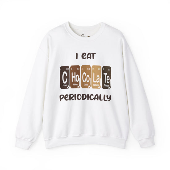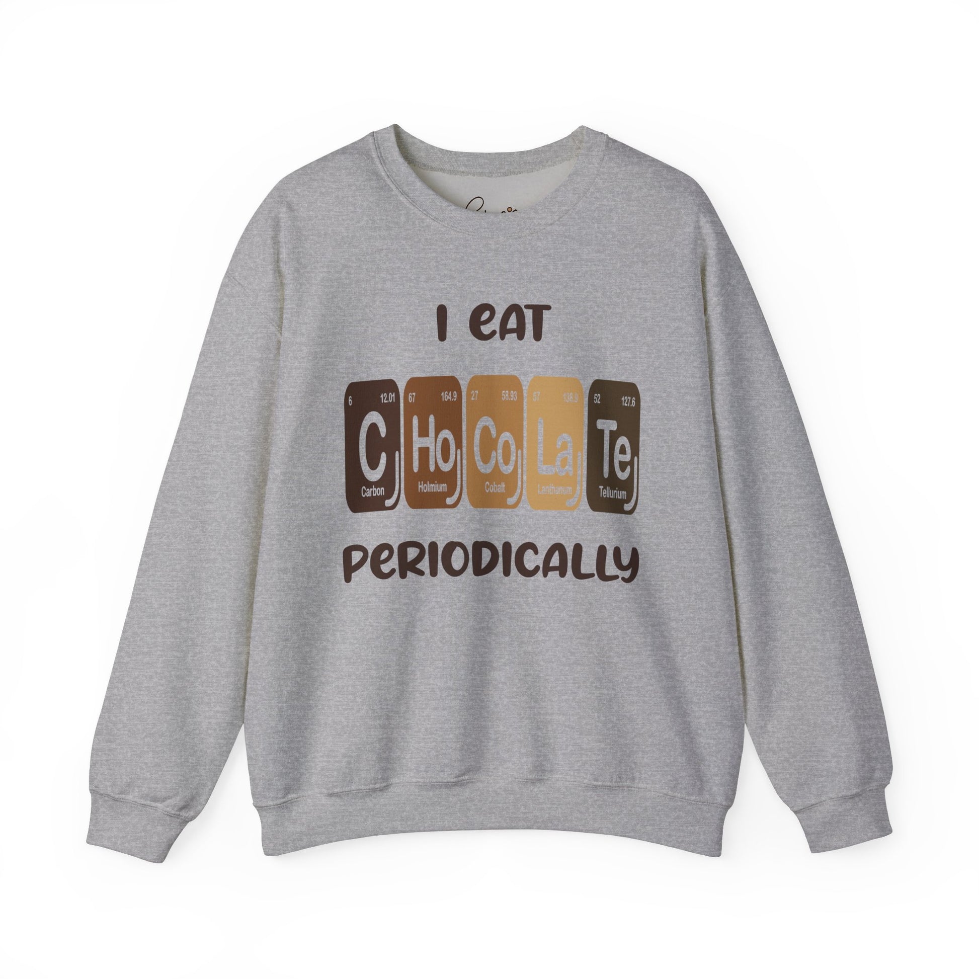 A cozy and stylish unisex crewneck sweatshirt with a unique design of 'Chocolate' spelled out using periodic table elements. Perfect for those who love science and sweets. Ideal for wearing during the colder months or as a casual statement piece. Great for adults looking for a comfortable and durable sweatshirt.